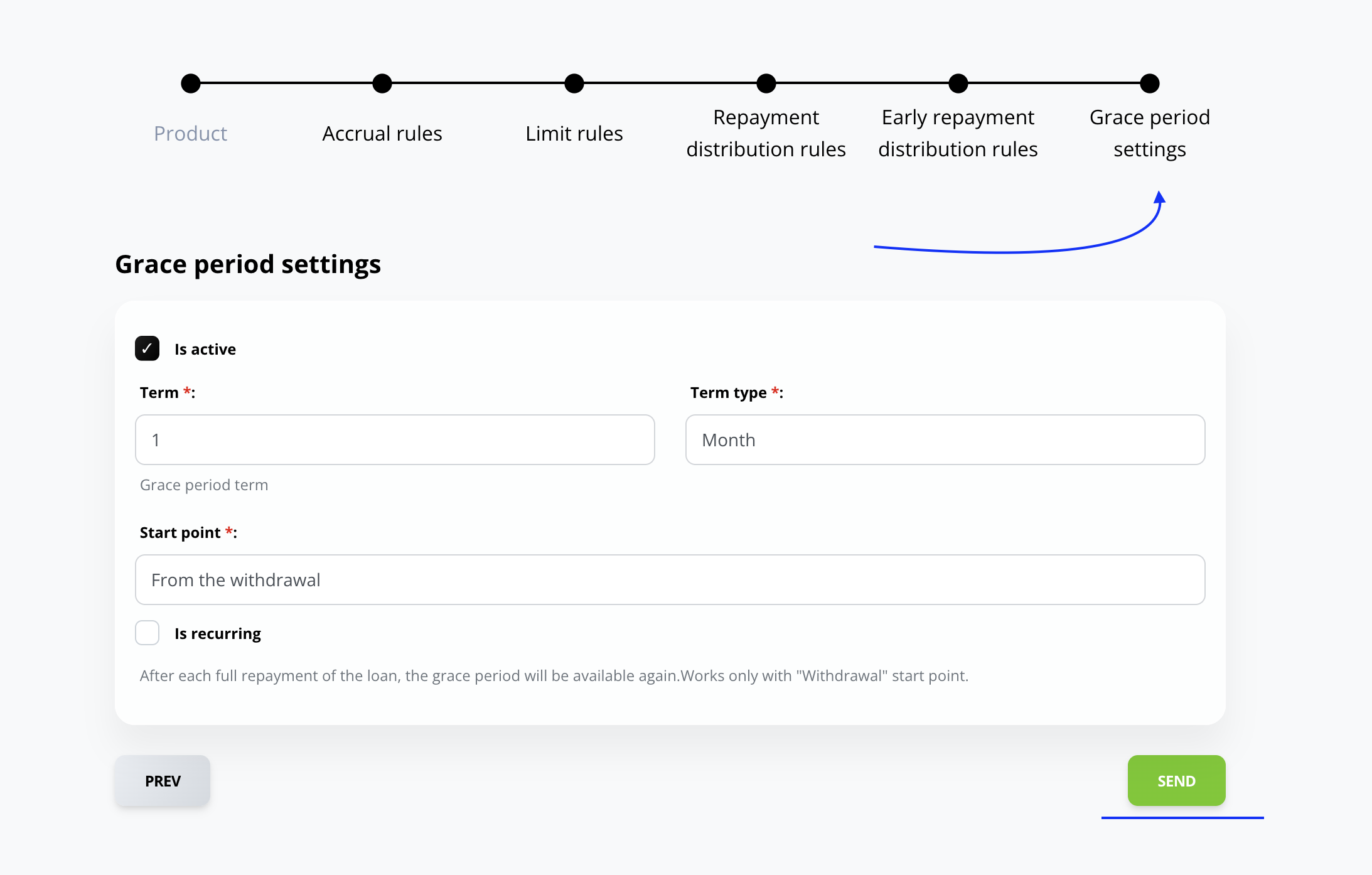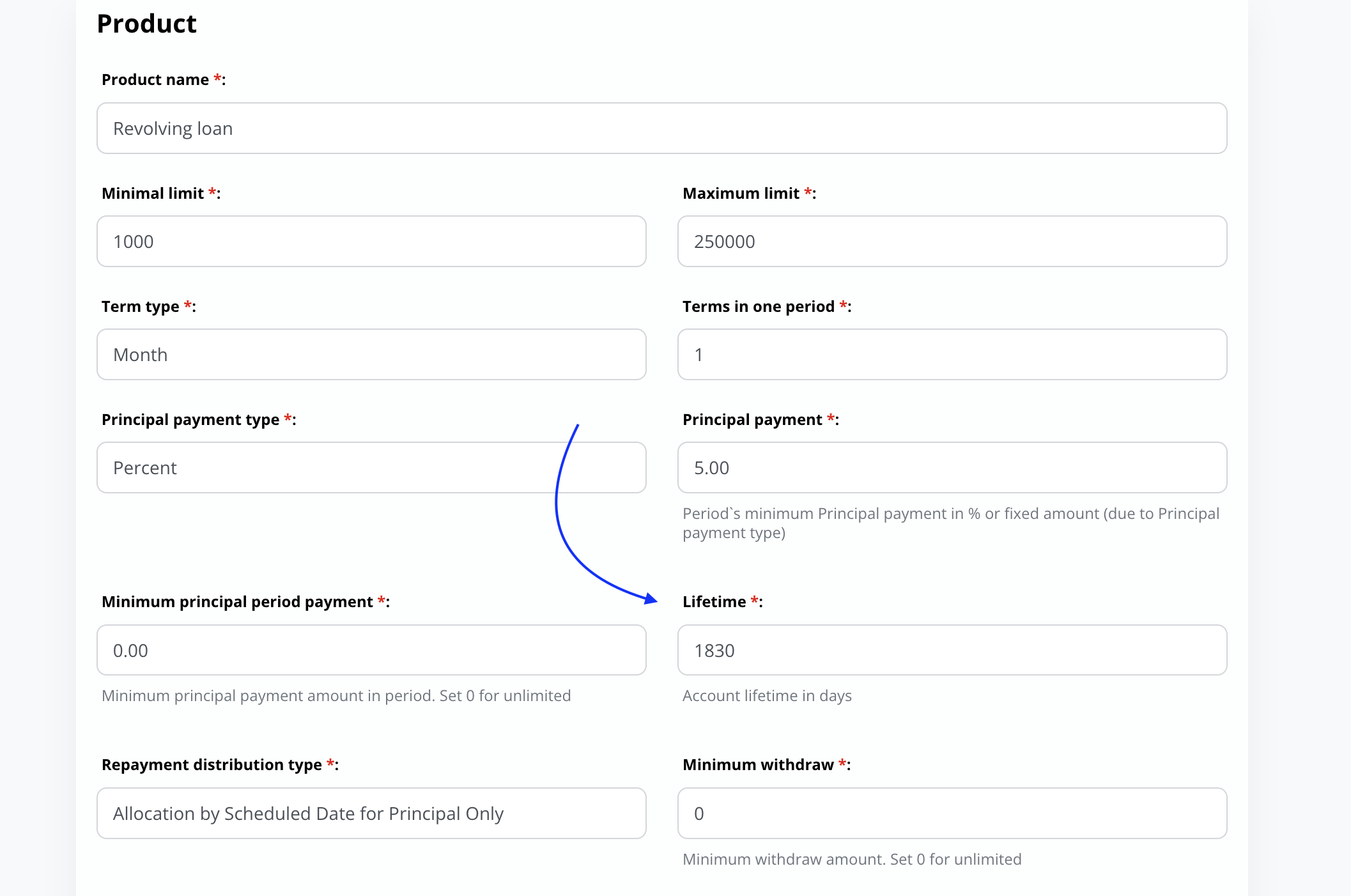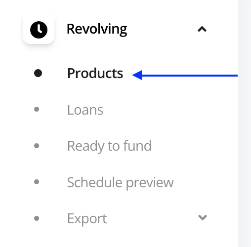 In the menu, navigate to Revolving → Products, then select the desired product from the list.