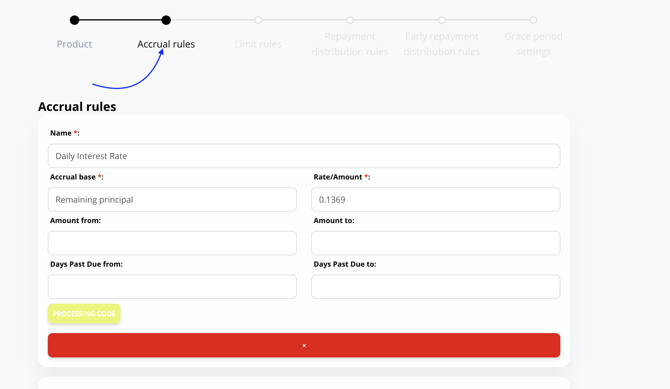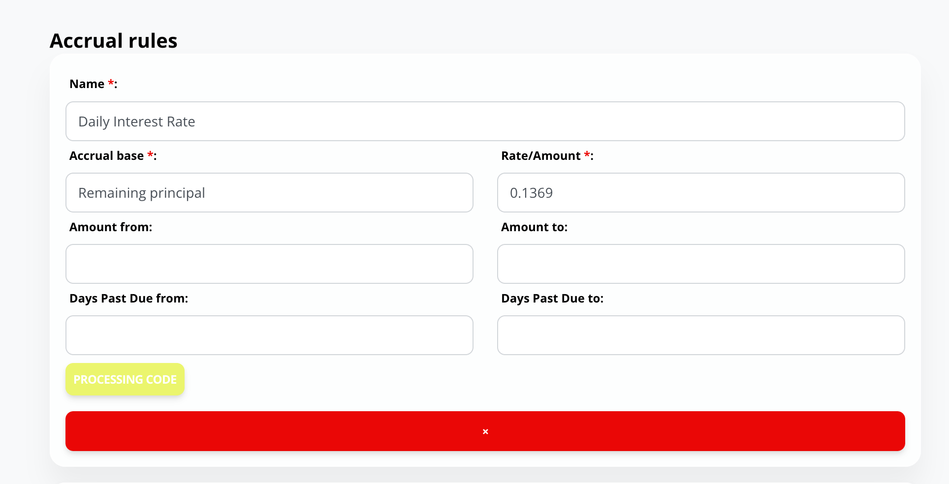 Find the accrual rule named Daily Interest Rate (the one with the base Remaining Principal) and adjust the Rate/Amount field as required.